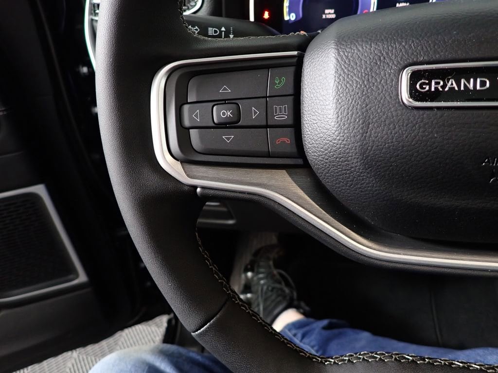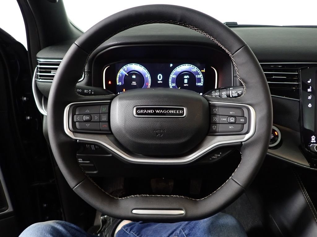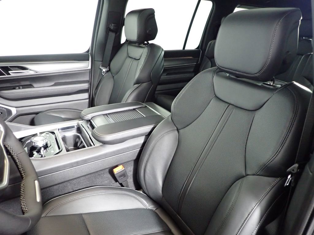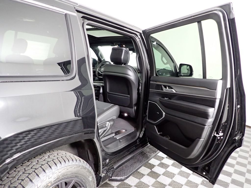 Grand Wagoneer Upland, 4WD, 3 Panel Sunroof, 3.92 Electronic Locking Rear Axle Ratio, 3rd Row 60/40 Power Recline Seat, Adjustable Roof Rail Crossbars, All-Season Floor Mats, Apple CarPlay/Android Auto, Auto Adjust in Reverse Exterior Mirrors, Auto Power Folding Exterior Mirrors, Auto Power Folding Mirrors, Auto-Dimming Exterior Driver Mirror, Black Exterior Accents, Blind Spot with Trailer Detection, Cargo Cover, Cargo Tray, Dual-Zone Automatic Temperature Control, Electronic Rear Limited Slip Differential, Exterior Mirrors Approach Lamps, Exterior Mirrors with Memory, Exterior Mirrors with Supplemental Signals, Exterior Parking Camera Rear, Fuel Tank Skid Plate Shield, Fully automatic headlights, Garage Door Transmitter, Heated Exterior Mirrors, Heated front seats, Heated steering wheel, Interior Rear Facing Camera, Locking in-Vehicle Safe, Memory seat, P and P Park and Unpark Assist with Stop System, Power Liftgate, Quadra-Lift Air Suspension, Quick Order Package 29V Upland, Radio: Uconnect 5 Nav with 12.0" Display, Rain Sensing Wipers, Reclining 3rd row seat, Selec-Speed Control, Semi Active Damping, Side Distance Warning, Steering wheel mounted audio controls, Surround View Camera System, Titanium Daylight Opening Upper, Titanium Upper Grille Applique, Trailer Hitch Zoom, Upland Package, Ventilated front seats, Wheels: 20" x 9" Aluminum Painted.