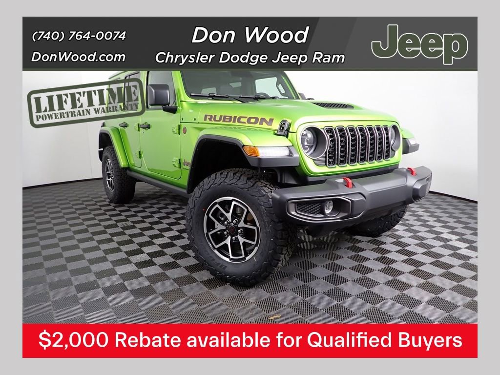 A short drive from Athens, Cambridge, Chillicothe, Circleville, Columbus, Lancaster, Logan, Marietta, Nelsonville, Newark, Pickerington, Pomeroy, and Zanesville in Ohio, as well as Charleston, Clarksburg, Huntington, Morgantown, Parkersburg, Vienna, and Wheeling in West Virginia. Shop our full lineup of new Chrysler, Dodge, Jeep, and Ram vehicles, including the RAM 1500, RAM 2500, RAM 3500, Jeep Grand Cherokee, Jeep Wrangler, Jeep Gladiator, Jeep Compass, Jeep Cherokee, Jeep Renegade, Wagoneer, Grand Wagoneer, Dodge Durango, Dodge Charger, Dodge Hornet, Chrysler Pacifica, and Chrysler Voyager! Looking for a specific trim? We offer Laramie, Longhorn, Limited, TRX, Rebel, Bighorn, Rubicon, Sahara, Sport, Trailhawk, and more! Going green? Ask about our Jeep 4xe and RAM plug-in hybrid lineup! Contact us today to find out what rebates, incentives, and financing options you may qualify for you could be eligible for more savings than you think! Ask us for full details on our Lifetime Limited Powertrain Warranty. Terms and conditions apply. See dealer for complete details. Vehicle: 2026 Jeep Wrangler Rubicon Stock#: J181012 | VIN Ending: 1C4PJXFG7TW181012. Price includes the following rebates:$1000 - 2026 National Retail Bonus Cash . Exp. 04/30/2026 $1000 - 2026 National Stellantis Loyalty Bonus Cash . Exp. 04/30/2026