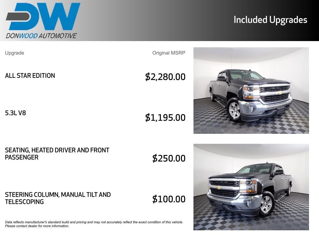 This Chevrolet Silverado 1500 LT has many features and is well equipped including, Touchscreen Infotainment, Heated Seats, 4-Wheel Drive, Backup Camera, Great Price, 10-Way Power Driver's Seat Adjuster, 110-Volt AC Power Outlet, 3.42 Rear Axle Ratio with Locking Rear Differential, 4.2 Diagonal Color Display Driver Info Center, 6 Speaker Audio System, All Star Edition, Alloy wheels, Auxiliary External Transmission Oil Cooler, Body-Color Power Adjustable Heated Outside Mirrors, Brake assist, Dual-Zone Automatic Climate Control, Electric Rear-Window Defogger, Electronic Stability Control, EZ Lift & Lower Tailgate, Front Center Armrest w/Storage, Fully Automatic (HID) High-Intensity Discharge Headlights, Heated Driver & Front Passenger Seats, Heavy-Duty Rear Locking Differential, OnStar w/4G LTE, Premium audio system: Chevrolet MyLink, Rear Vision Camera w/Dynamic Guide Lines, Remote Vehicle Starter System, Steering Wheel Audio Controls, Thin Profile LED Fog Lamps, Trailering Package.