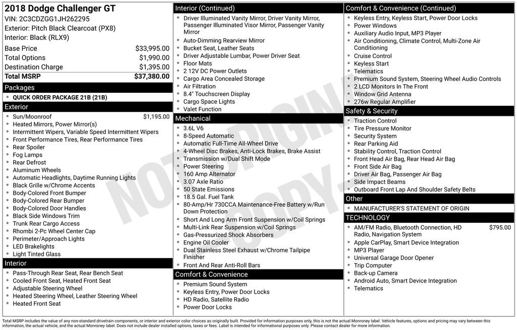 Clean CARFAX! CARFAX One-Owner! This Dodge Challenger GT has many features and is well equipped including, Apple CarPlay, Power Sunroof, Heated Steering Wheel, Heated Seats, Ventilated Seats, Leather Seats, Backup Camera, Great Price, 1-YR SiriusXM Guardian Trial, 5-Year SiriusXM Traffic Service, 5-Year SiriusXM Travel Link Service, 8.4 Touchscreen Display, Alloy wheels, Apple CarPlay, Auto-dimming Rear-View mirror, Beats Audio on 8.4 Touchscreen w/10 Premium Speakers & Subwoofer w/552-Watt Amplifier, Auxiliary Jack & 2 USB Ports, Brake assist, Delay-off headlights, Electronic Stability Control, Fully automatic headlights, Google Android Auto, GPS Antenna Input, GPS Navigation, HD Radio, Heated & Ventilated Front Seats, Heated door mirrors, Heated Front Seats, Heated front seats, Integrated Center Stack Radio, Integrated Voice Command w/Bluetooth, Leather Trim Seats, Media Hub (2 USB, AUX), Panic Alarm, ParkView Rear Back-Up Camera, Power door mirrors, Power Sunroof, Quick Order Package 21B, Radio: Uconnect 4C Nav w/8.4 Display, Security System, SiriusXM Satellite Radio, SiriusXM Traffic Plus, SiriusXM Travel Link, Speed control, Split folding rear seat, USB Host Flip, Ventilated front seats.