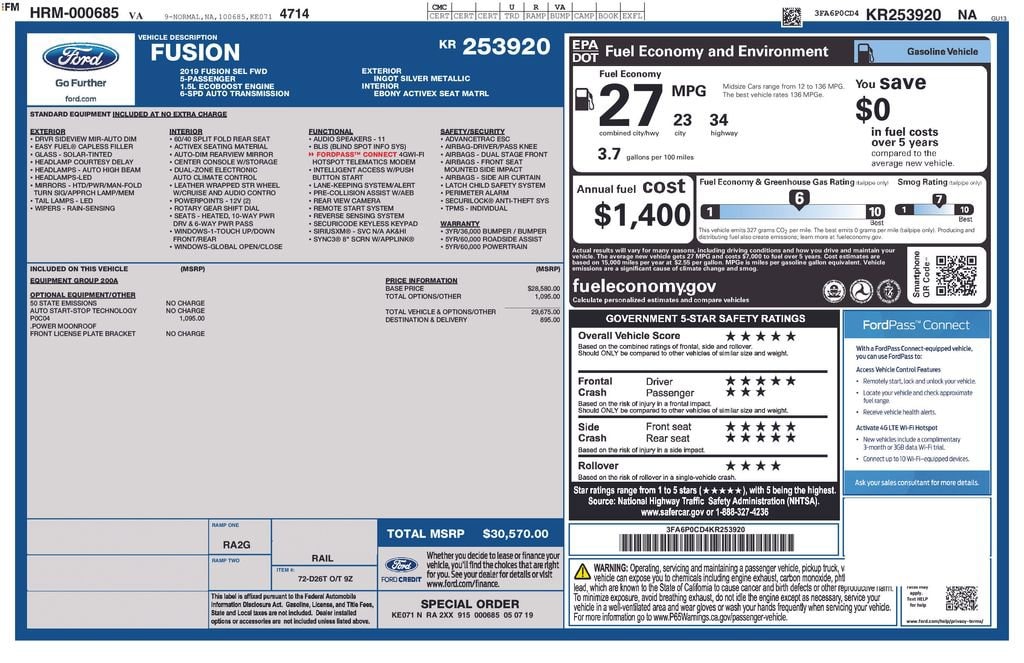 A short drive from Athens, Cambridge, Chillicothe, Circleville, Columbus, Lancaster, Logan, Marietta, Nelsonville, Newark, Pickerington, Pomeroy, and Zanesville in Ohio, as well as Charleston, Clarksburg, Huntington, Morgantown, Parkersburg, Vienna, and Wheeling in West Virginia. 2065 East State St. Athens, OH 45701. Near Ohio University! Down the road from Hocking Hills! Vehicle: 2019 Ford Fusion SEL Price: 13500 (live market adjusted) CarFax: True, available today Stock#: F296338CT | VIN Ending: 3FA6P0CD4KR253920 Delivery: Nationwide delivery available.