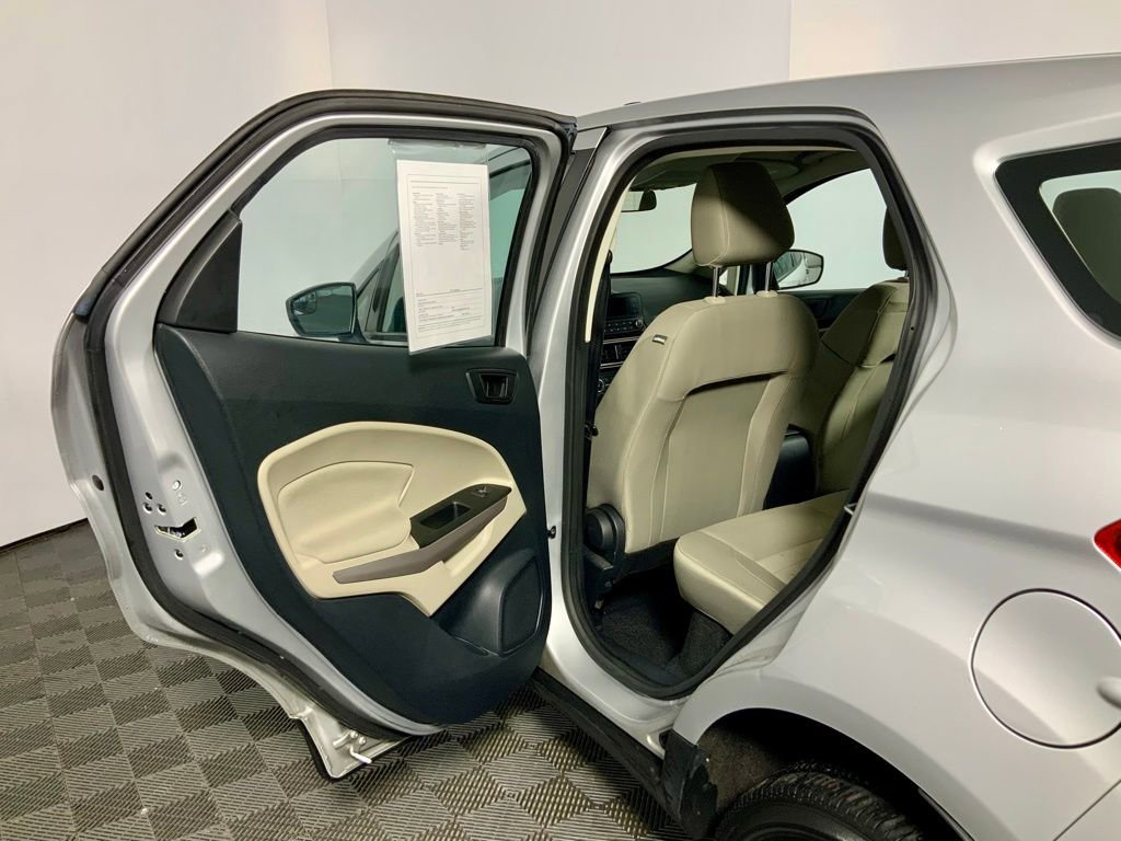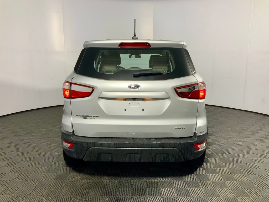 Clean CARFAX!, This Ford EcoSport S has many features and is well equipped including, 4-Wheel Drive, Backup Camera, Brake assist, Cloth Front Bucket Seats, Electronic Stability Control, Exterior Parking Camera Rear, Fully automatic headlights, Power door mirrors, Power windows, Remote Keyless Entry, Speed control, Split folding rear seat, Steering wheel mounted audio controls, SYNC Communications & Entertainment System, Wheels: 16" Low-Gloss Magnetic-Painted.