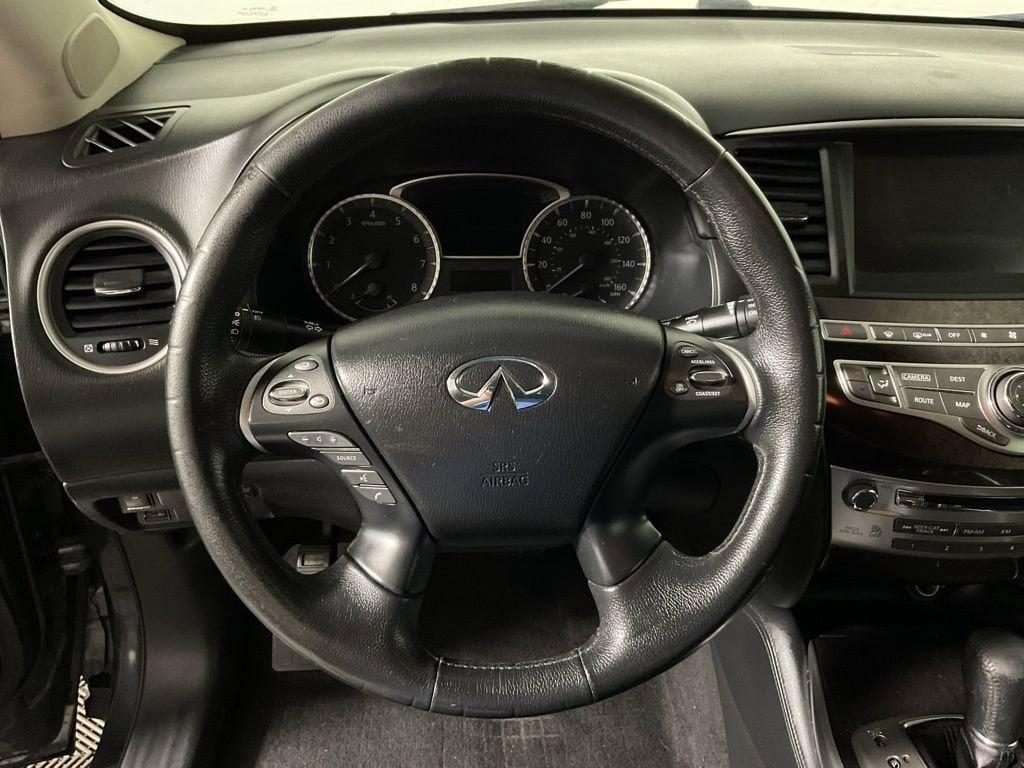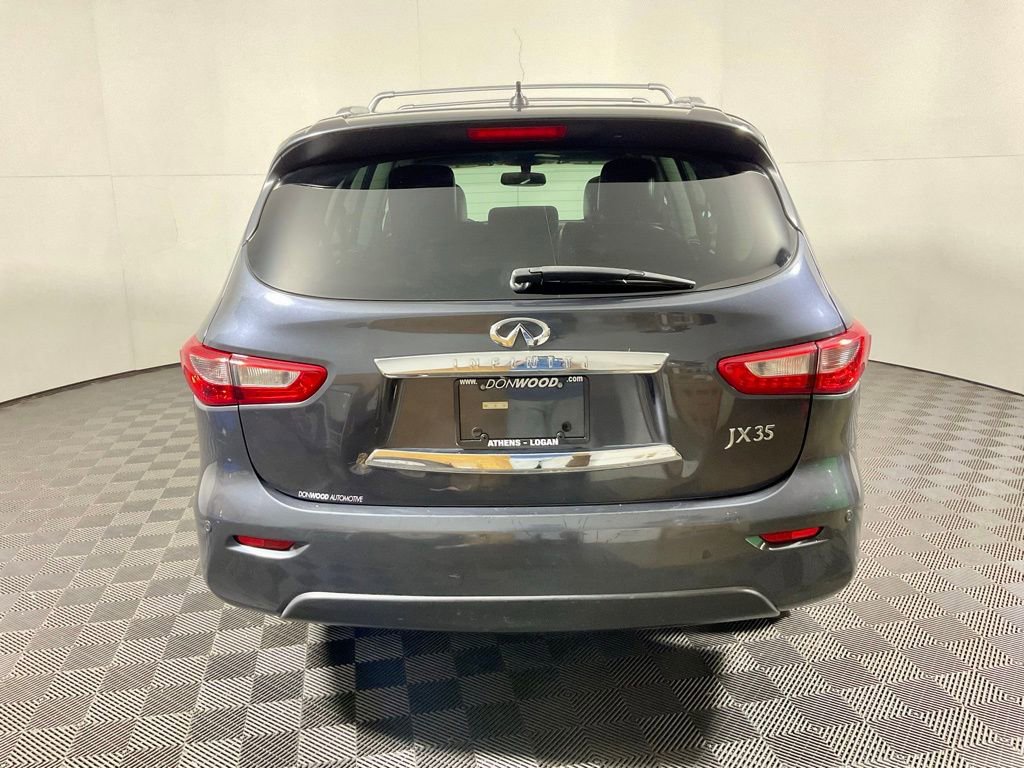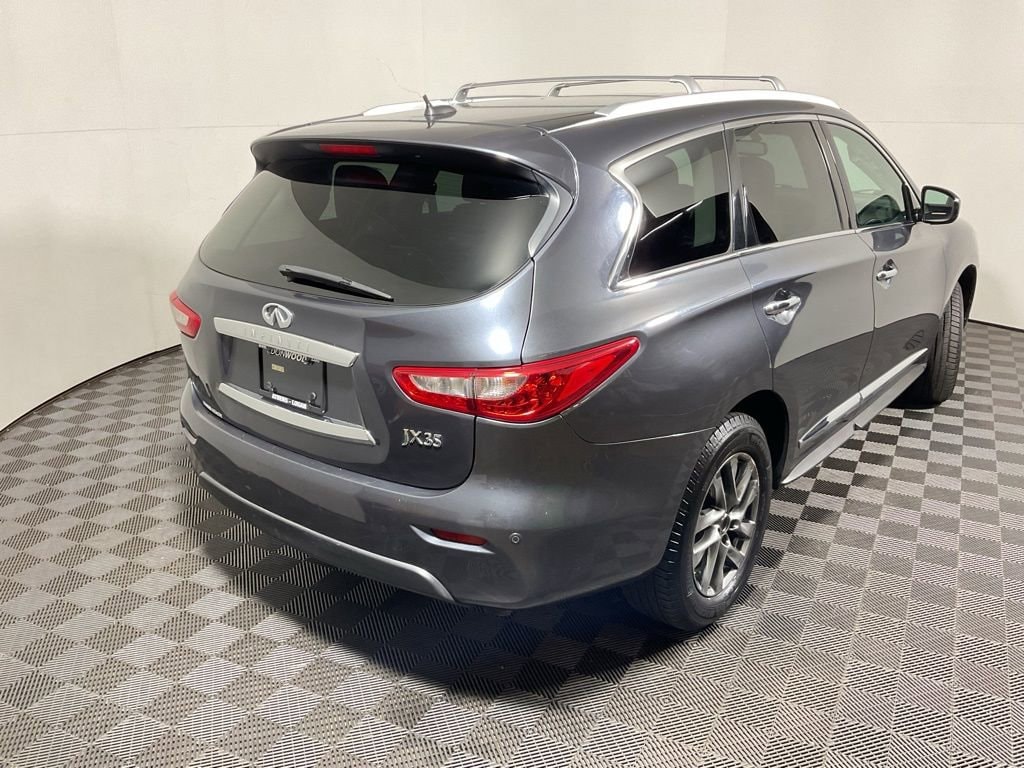 Clean CARFAX! This INFINITI JX35 AWD has many features and is well equipped including, Power Sunroof, Power Liftgate, All-Wheel Drive, 6 Speakers, ABS Brakes, Alloy wheels, AM/FM Radio: SiriusXM, AM/FM/CD/MP3 w/ 6 Speaker Audio System, Dual-Zone Automatic Temperature Control, Electronic Stability Control, Exterior Parking Camera Rear, Fully automatic headlights, Heated door mirrors, Heated Front Seats, Heated front seats, Illuminated entry, Leather Shift Knob, Leather steering wheel, Leather-Appointed Seats, Low Tire Pressure Warning, Panic Alarm, Panoramic Power Moonroof, Power driver seat, Power Liftgate, Power passenger seat, Power windows, Radio data system, Reclining 3rd row seat, Remote Keyless Entry, Security System, Split folding rear seat, Steering wheel mounted audio controls, Traction Control.