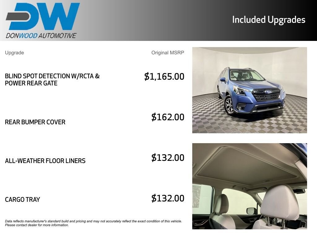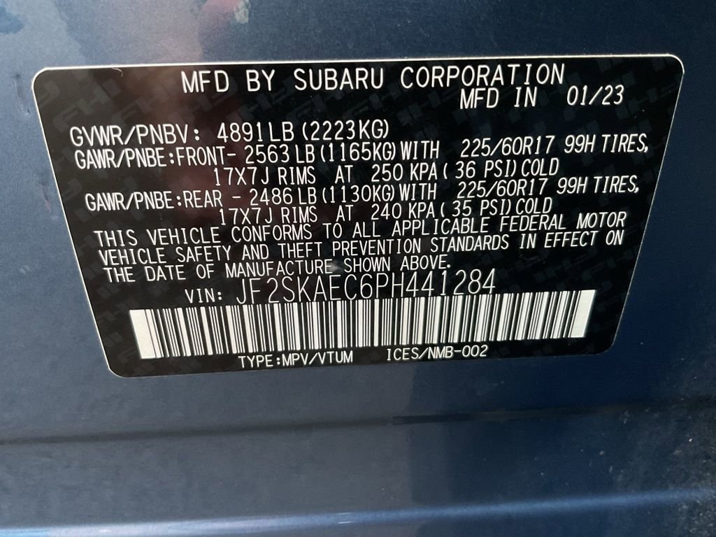 Auto High-beam Headlights, Automatic temperature control, Blind Spot Detection w/RCTA & Power Rear Gate, Blind-Spot Detection (BSD), Driver's Seatback Divided Pocket, Dual USB Charge Ports, Exterior Parking Camera Rear, EyeSight System, Four wheel independent suspension, Front fog lights, Heated Front Bucket Seats, Multi-Function High Grade Display, Power driver seat, Power moonroof: Panoramic, Power Rear Gate, Roof rack: rails only, STARLINK/Apple CarPlay/Android Auto, Wheels: 17" x 7.0 J Black Machine Finish Alloy.